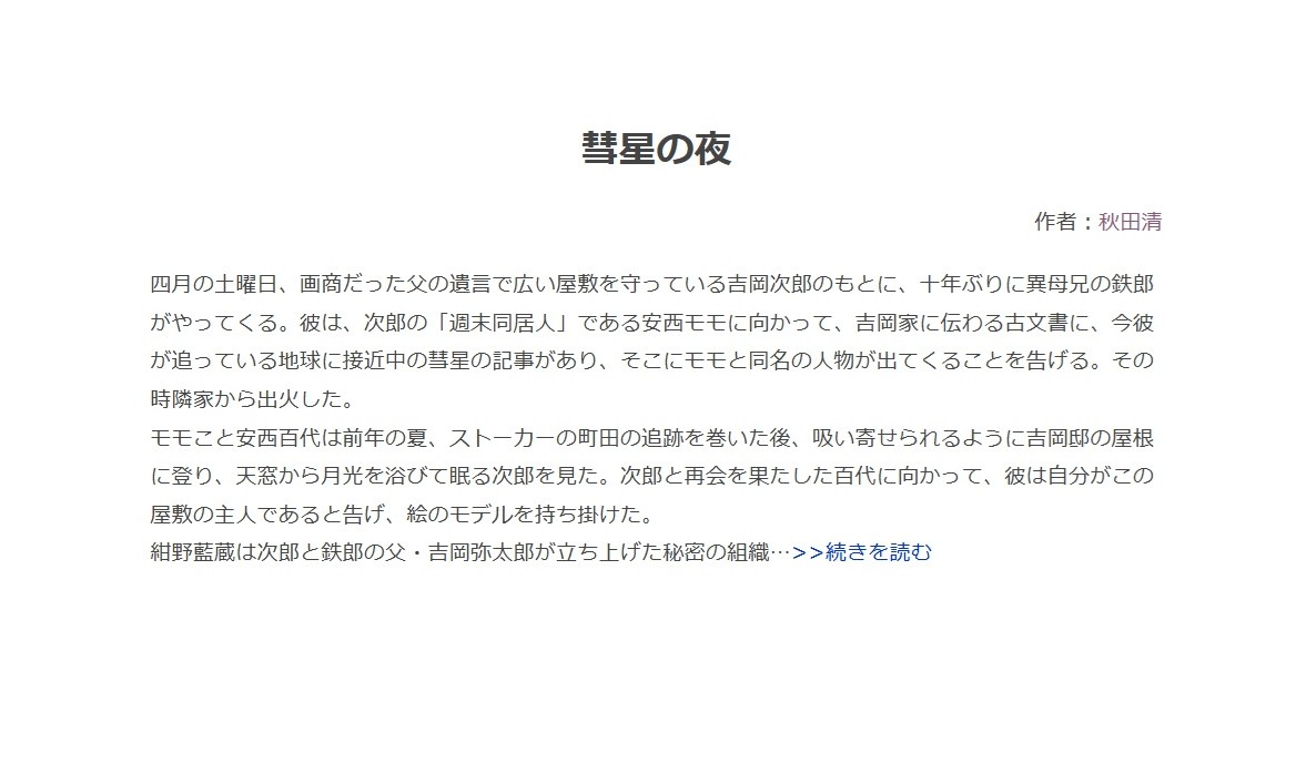 R15 残酷な描写あり 現代 洋館 古文書 二重の結界 不器用な恋 ダークファンタジー 彗星