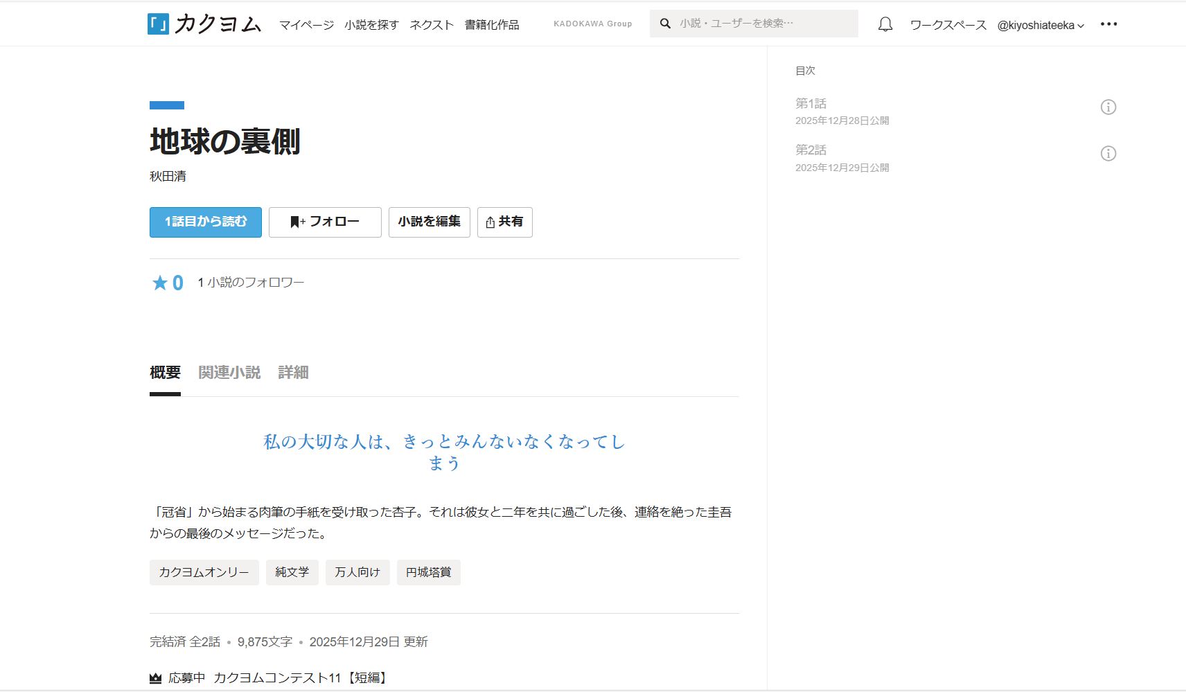 「小説家になろう」に続いて、同じく小説投稿サイトの「カクヨム」にも作品を投稿してみた。こちらは一万字未満の短編である。